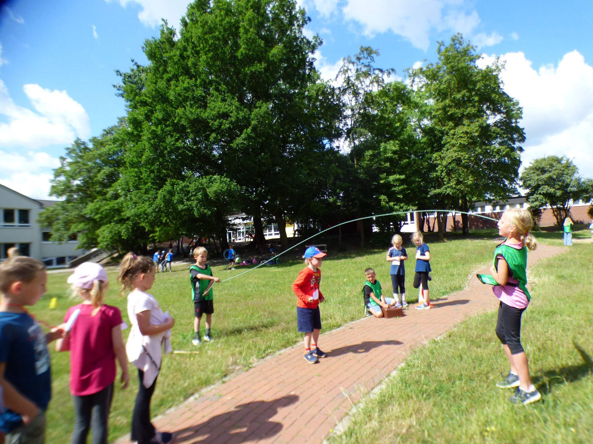 Gemeinsam mit den Einschulungskindern der umliegenden Kindergärten feierten unsere Erstklässler ein Sport- und Bewegungsfest auf dem Schulhof. An vielen verschiedenen Stationen wurden Bewegungsaufgaben gelöst, es fand ein Picknick statt und unsere "neuen Erstklässler" konnten ihre zukünftige Schule kennenlernen.